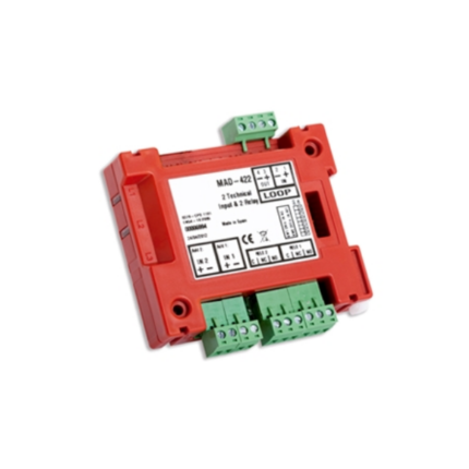 MAD-402 -Διευθυνσιοδοτούμενο Module Ελέγχου Δύο Επιτηρούμενων Εισόδων Με Ενδεικτικό Λειτουργίας Και Έξοδο Nc/Co Detnov