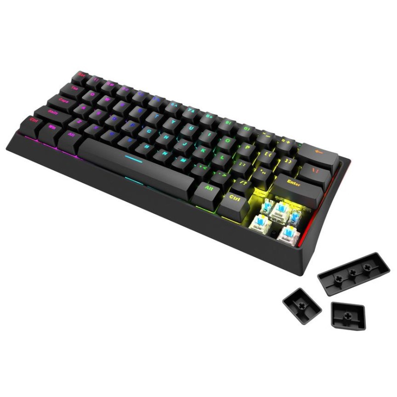 Το MARVO KG962 είναι ένα μηχανικό πληκτρολόγιο 61 πλήκτρων για gaming με RGB φωτισμό. Διαθέτει αποσπώμενο καλώδιο USB TYPE C.