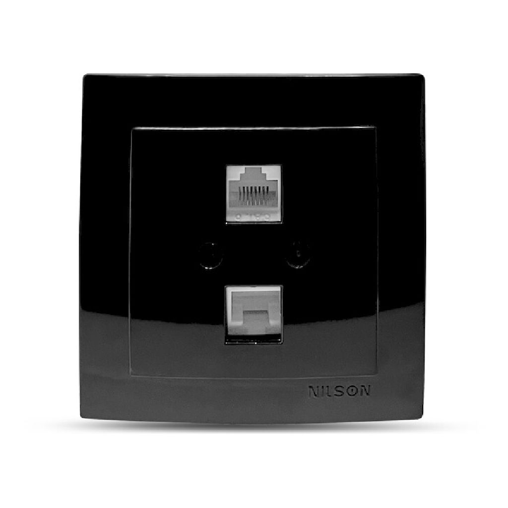 Μαύρη Πρίζα Δικτύου Cat6 Διπλή
