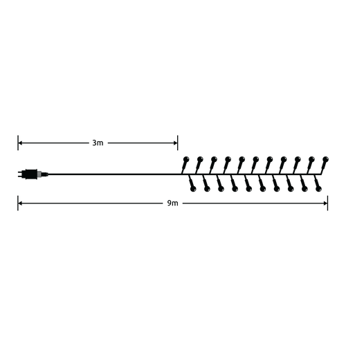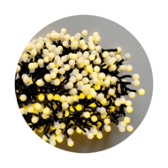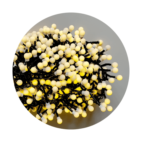 Φωτίστε τη γιορτινή σας διακόσμηση με 576 LED σε ζεστό λευκό χρώμα τύπου berry/σφαιρικά, πάνω σε πράσινο καλώδιο μήκους 6 μ. Τροφοδοτούνται με ευρωπαϊκό βύσμα ρεύματος, με βαθμό προστασίας IP44 για χρήση σε εσωτερικούς και εξωτερικούς χώρους, και διαθέτουν 8 λειτουργίες φωτισμού για να δημιουργήσετε την ιδανική εορταστική ατμόσφαιρα.