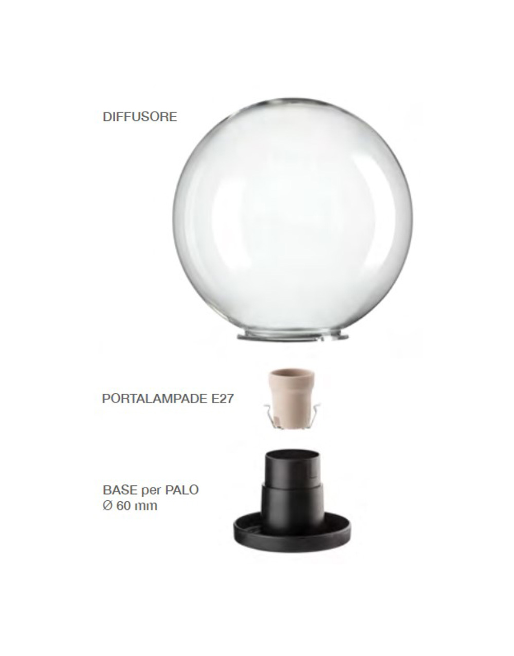 Μπάλα ακρυλική Φ250. Είναι οπάλ και ο βαθμός στεγανότητας είναι IP65. H χώρα προέλευσης είναι η Ιταλία. 2 χρόνια εγγύηση από την ACRILUX.