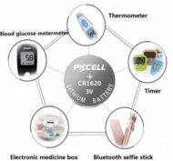 Εφαρμογή: Ρολόγια, ρολόγια, αριθμομηχανές, υπολογιστές, φωτογραφικές μηχανές, ψηφιακές φωτογραφικές μηχανές, PDA, τηλεχειριστήρια, βιντεοκάμερες, ηλεκτρονικά παιχνίδια, ηλεκτρονικά όργανα, συσκευές αναπαραγωγής MP3, ψηφιακές συσκευές εγγραφής φωνής, παιχνίδια, γλυκόζη αίματος, μετρητές μέτρησης χοληστερόλης και άλλα ηλεκτρονικά προϊόντα.