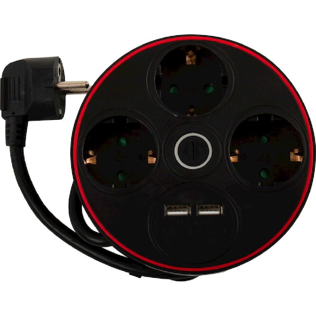 Πολύπριζο 3 Θέσεων Με Διακόπτη 2Xusb Μαύρο
