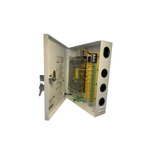 Power Supply 12V/10A with Overheat Protection and 9 Outputs In Metal Box Harken