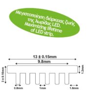 Προφίλ απαγωγής θερμότητας, για καλύτερη ψύξη και μεγαλύτερη διάρκεια ζωής ταινιών LED.