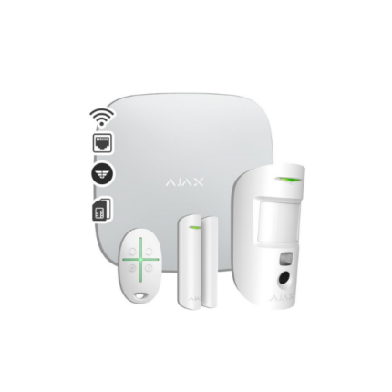 Το Ajax Starter Kit Cam αποτελεί την πλέον εξελιγμένη έκδοση του ασύρματου συναγερμού AJAX καθότι είναι το μόνο που συνεργάζεται με το περιφεριακό motion cam το οποίο προσφέρει και οπτική επαλήθευση του συναγερμού! Ο κεντρικός πίνακας Hub 2 χρησιμοποιεί Ethernet ή μία από τις 2 κάρτες SIM για να εγγυηθεί την παράδοση των συναγερμών και των φωτογραφιών. Τα κανάλια λειτουργούν παράλληλα και αλληλοσυνδέονται σε περίπτωση έκτακτης ανάγκης.Τα πρωτόκολλα συμπίεσης και μετάδοσης εγγυώνται γρήγορη παράδοση της σειράς φωτογραφιών ακόμα και με αδύναμη συνδεσιμότητα στο Διαδίκτυο.Σε περιπτώσεις παρεμβολών ή μπλοκαρίσματος, το πάνελ συναγερμού αλλάζει τη συχνότητα και ειδοποιεί το χρήστη.Σε περίπτωση διακοπής ρεύματος, το σύστημα θα συνεχίσει να λειτουργεί κανονικά χάρις την εφεδρική μπαταρία.