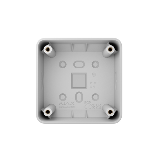 Η SurfaceBox [55] είναι ένα κουτί για εγκατάσταση επιτοίχιων διακοπτών και πριζών Ajax χωρίς ορατές συνδέσεις. Απολαύστε όλα τα πλεονεκτήματα των συσκευών Ajax, ακόμη κι αν οι τοίχοι ή η καλωδίωση της εγκατάστασης δεν επιτρέπουν την άμεση ενσωμάτωση διακοπτών ή πριζών. Το SurfaceBox καθιστά την εγκατάσταση υπόθεση λίγων λεπτών και ταιριάζει απόλυτα με το χρώμα και το σχήμα των διακοπτών και των πριζών Ajax, δημιουργώντας μια αρμονική και ομοιόμορφη εμφάνιση.
