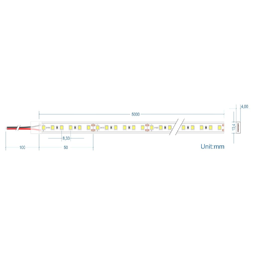 Ταινία Led Emphasis 9.6 Watt/M 3000K 24V Cri80 Ip67 120 Led/M 5M Cubalux