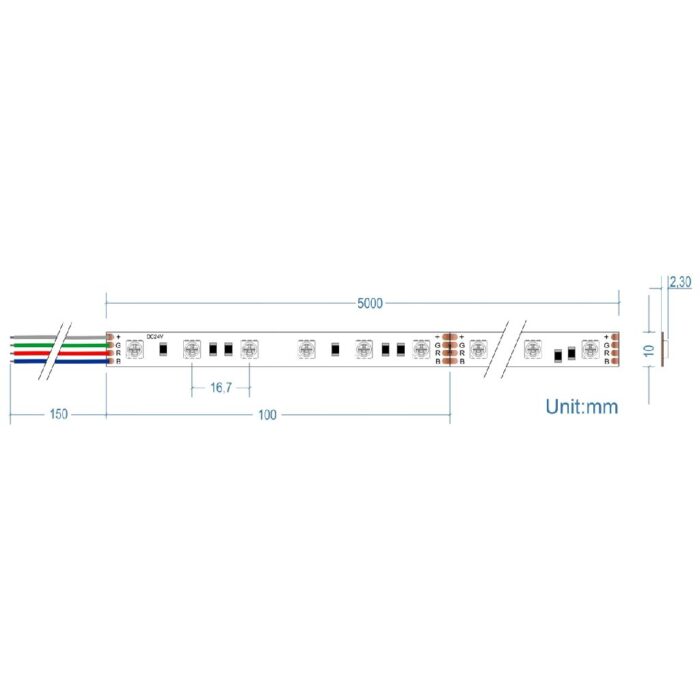 Ταινία Led Τωra Rgb 14.4 Watt/M 24V Ip65 60 Led/M 5M Cubalux
