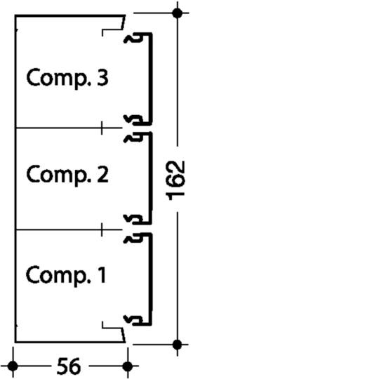 TEHALIT GBD ΚΑΝΑΛΙ 3 ΤΜΗΜΑΤΩΝ 162x56mm ΜΑΥΡΟ