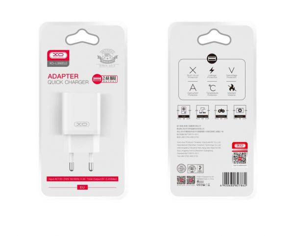 Ο XO L99 είναι ένας φορτιστής με μέγ. 2.4Α. Ένα ρεύμα εξοπλισμένο με μία υποδοχή USB. Παρέχει αρκετή ενέργεια για να φορτίσει ακόμη και τις μεγαλύτερες διαθέσιμες κινητές συσκευές. Η κλασική εμφάνιση ταιριάζει σε όλους τους τύπους εσωτερικών χώρων και η ποιότητα κατασκευής υποδηλώνει ότι είναι μια συμπαγής και ανθεκτική συσκευή.