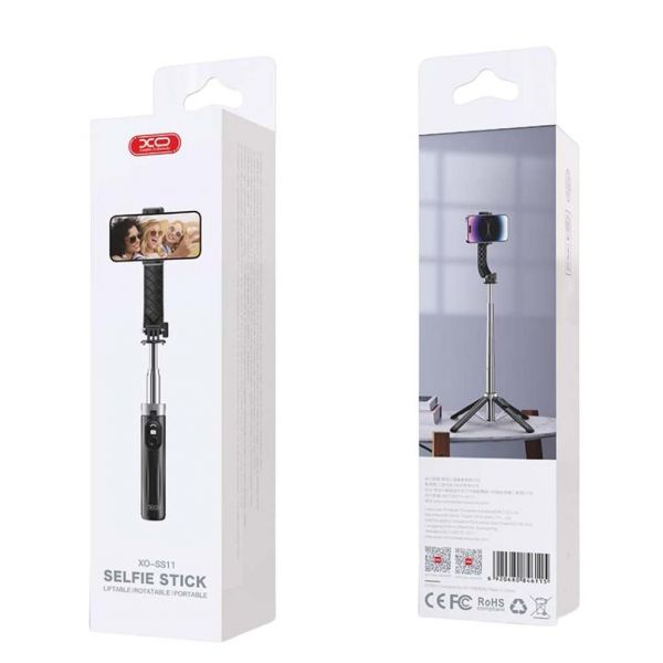 Ένα συμπαγές και αισθητικά κατασκευασμένο selfie stick XO SS11 με άνετη βάση τηλεφώνου και ενσωματωμένο τρίποδο. Το κλείστρο του τηλεφώνου ενεργοποιείται χρησιμοποιώντας ένα κουμπί στο τηλεχειριστήριο μέσω σύνδεσης Bluetooth. Η συσκευή έχει σχεδιαστεί με τέτοιο τρόπο ώστε όταν διπλώνεται να καταλαμβάνει πολύ λίγο χώρο.